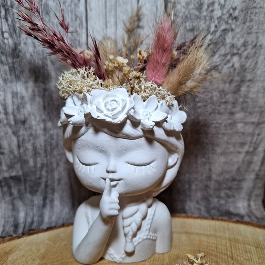 Keraflott Blumenmädchen Laura mit Trockenblumen – Modernes Dekor, Wunschfarbe, Innenraumdekoration