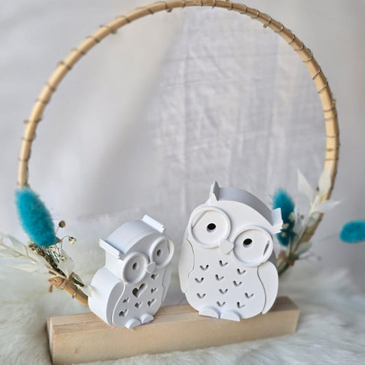 Lichterbogen aus Holz – Eulen, Trockenblumen & sanftes Licht | Handgemacht, Keraflott-Eulen