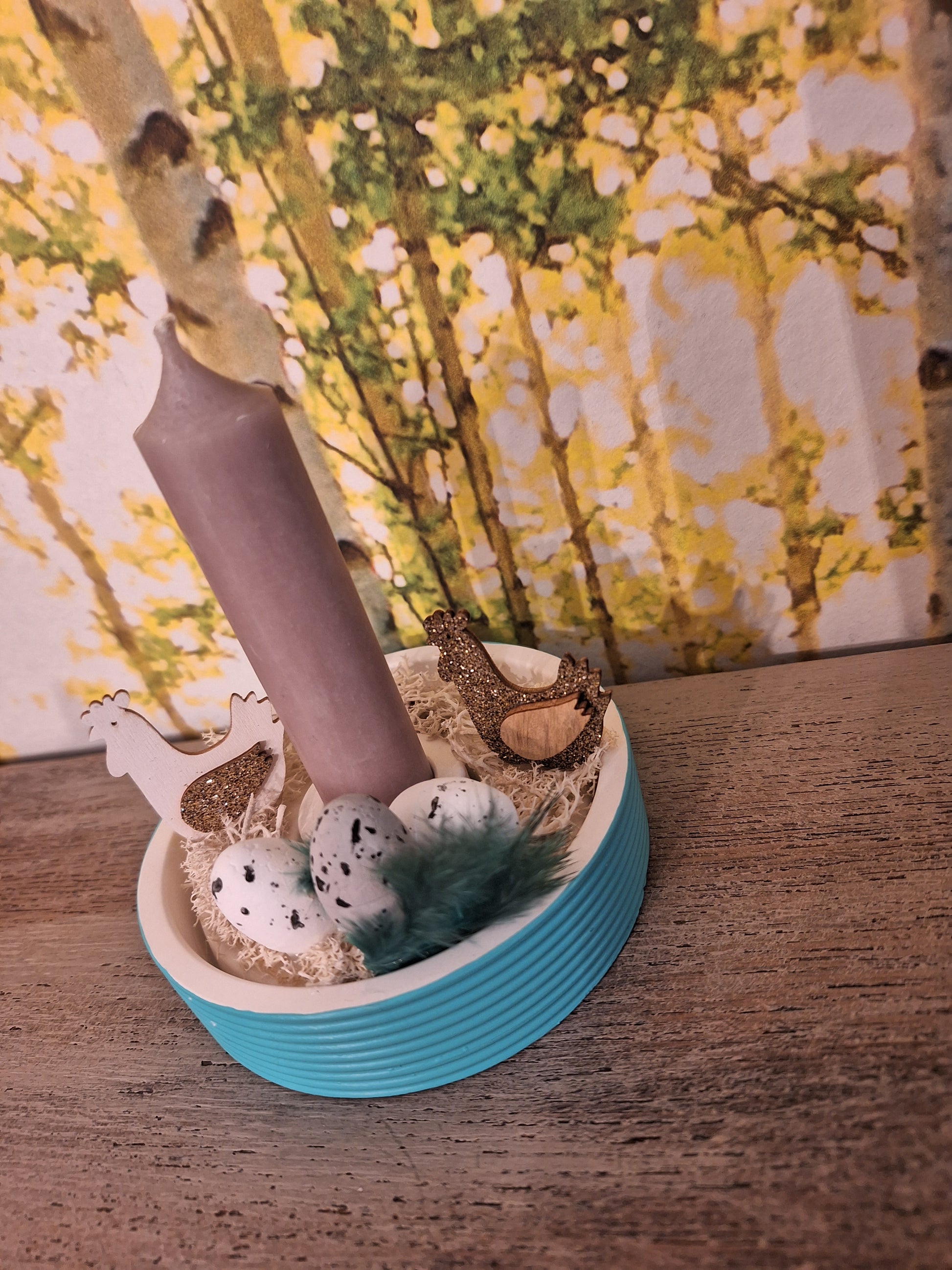 Osterlicher Stabkerzenhalter in Frischem Blau mit Acrylfarbe – Dekorative Eier & Hühner