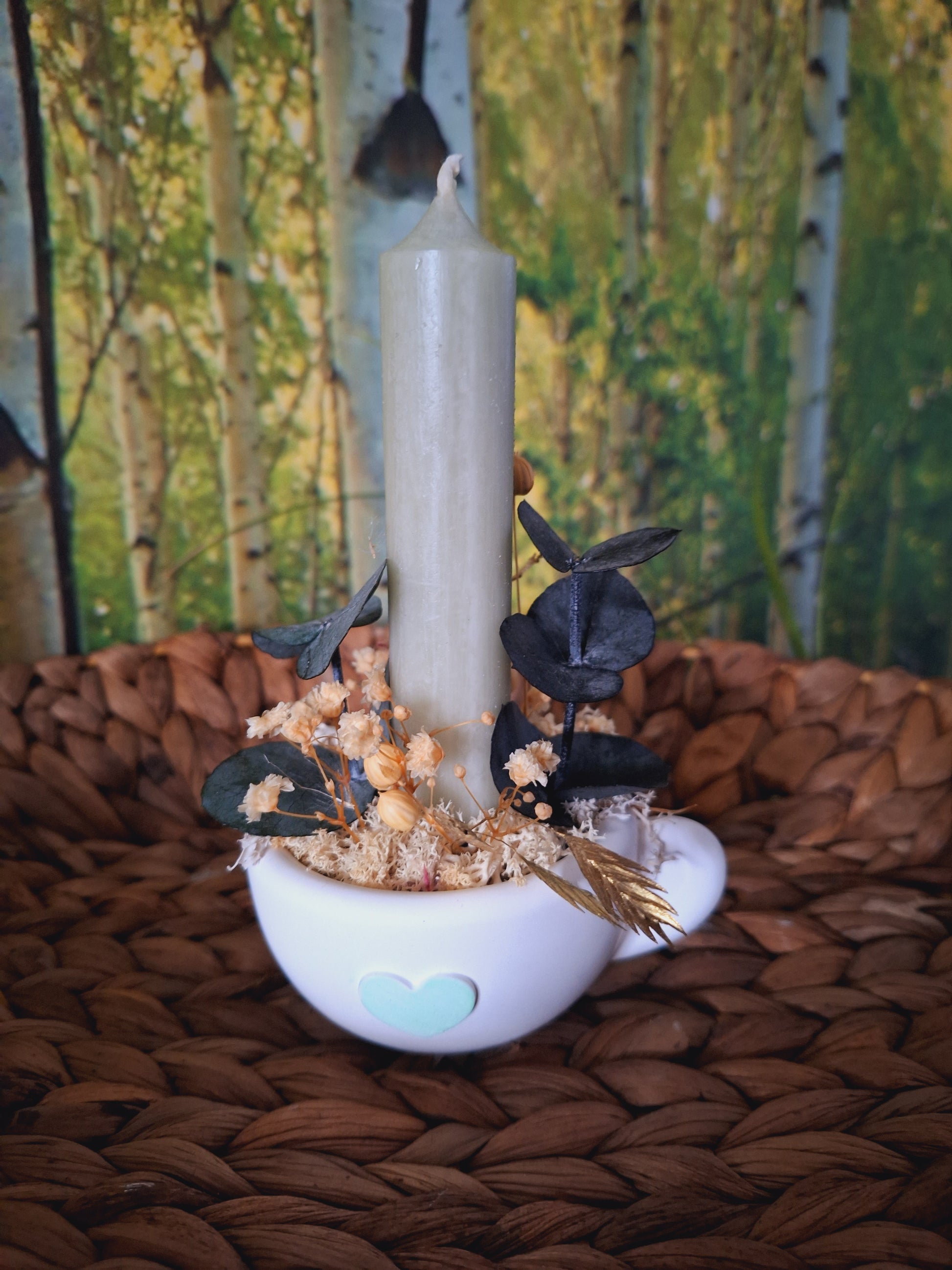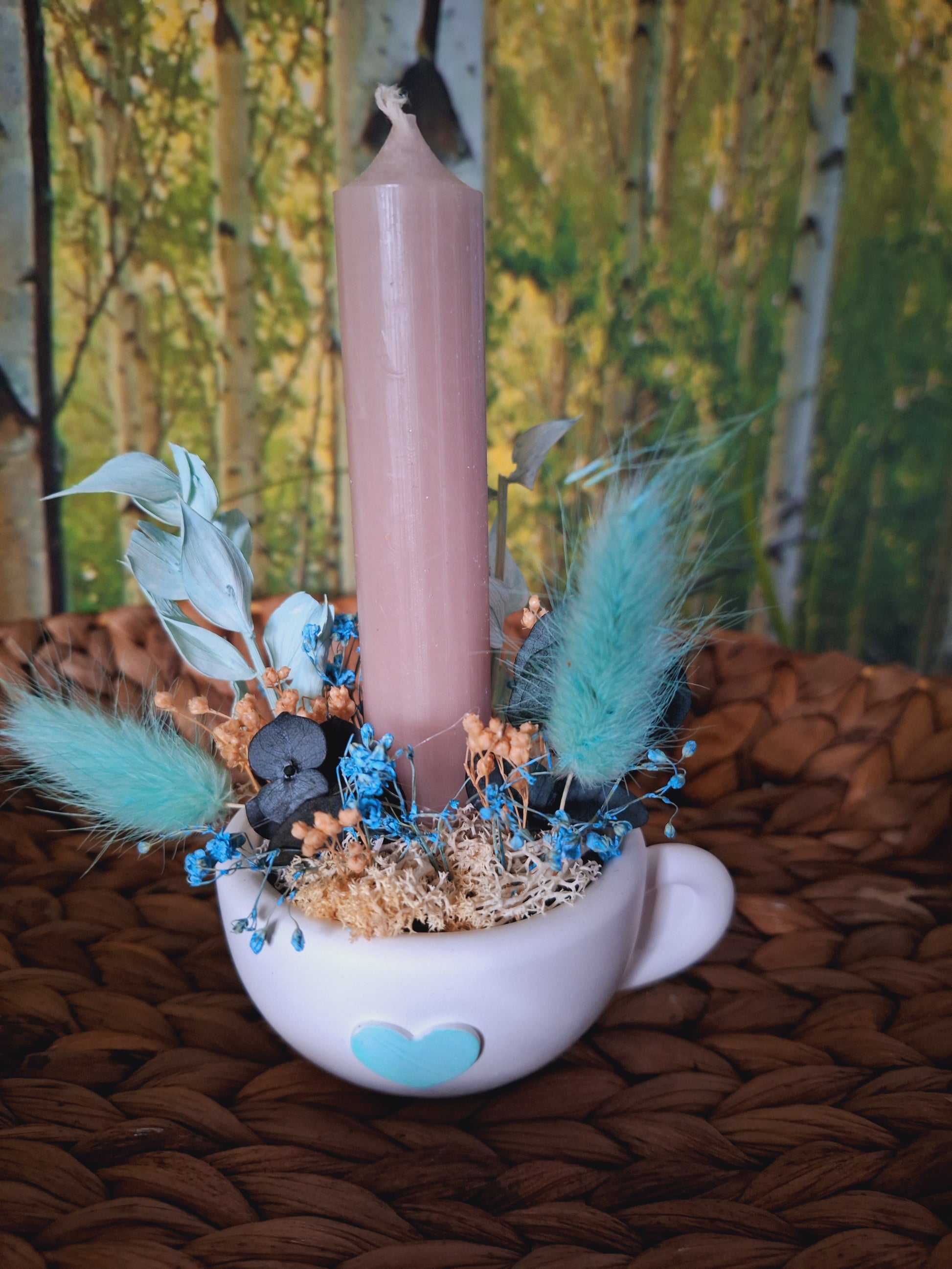 Keraflott-Gegossene Tasse mit Herz – Dekoriert mit Trockenblumen & Stabkerze, Innenraumdeko, personalisierbar